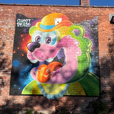 Matt Hutton AKA Ghostbeard is a Detroit artist spealizing in unique cartoon characters based off animals and cars. His bright, candy-colored, murals and knack for storytelling can be spotted all over the USA and beyond. You might even catch him spraying with one of his friends, like Patch Whisky or Rick Williams, out in the wild.